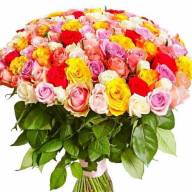 Композиция из 101 розы нежного кремового, роскошного алого, игривого розового, сочного желтого и волнительного персикового цвета с деликатными белыми бутонами балует многогранностью и оригинальностью. Такой букет призван покорить сердце дамы, восхитить её и пригласить на романтическое свидание. Не стоит останавливаться на значении отдельных оттенков, ведь они идеально дополняют друг друга и выглядят поистине роскошно. Если вам уже давно не удается добиться внимания девушки, букет из 101 разноцветной розы в мгновение ока решит этот вопрос и объяснить серьезность ваших намерений.